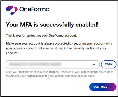 - Click Verify to complete the MFA setup process.