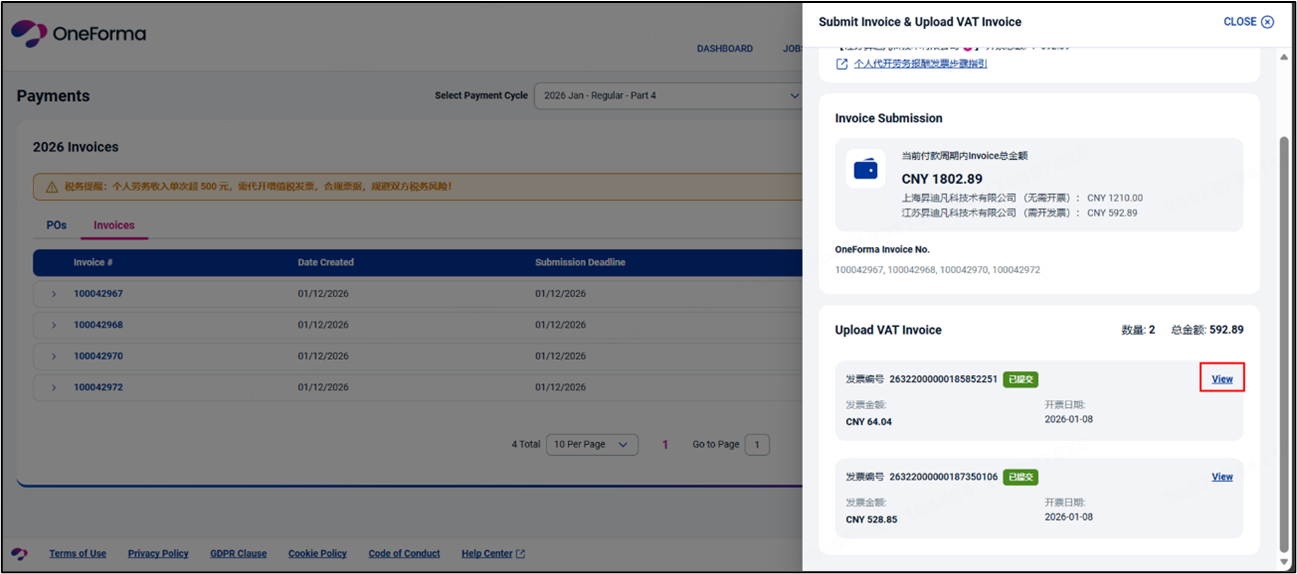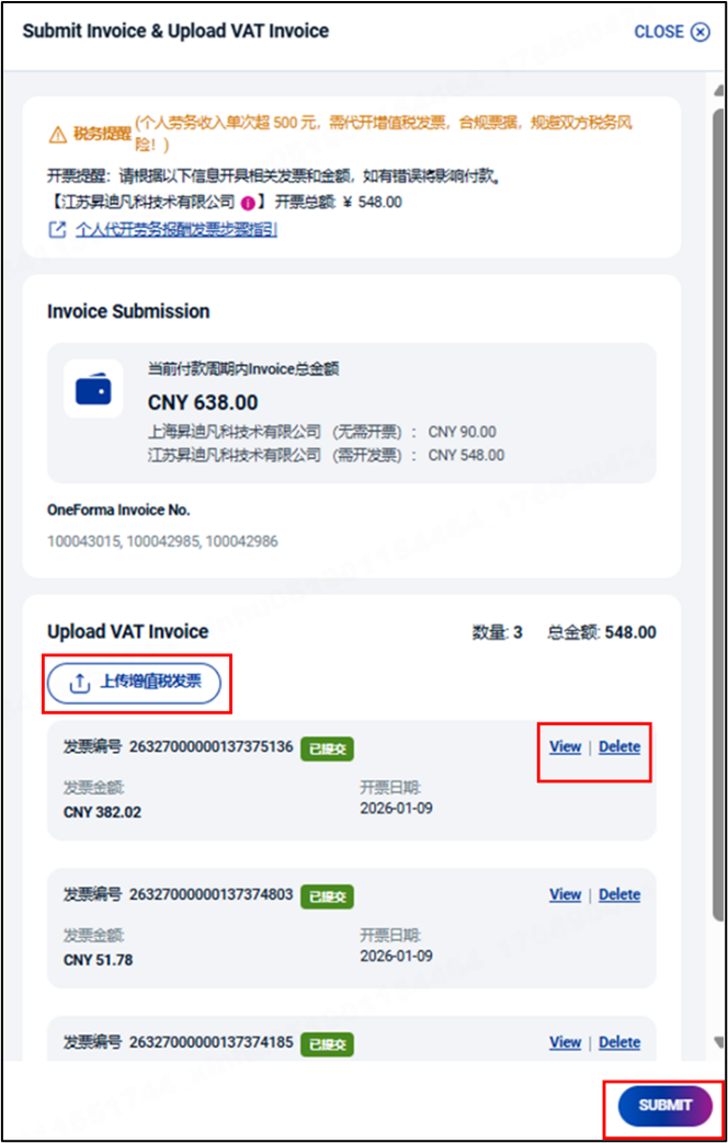 - If verification passes, your VAT invoice will be uploaded successfully.