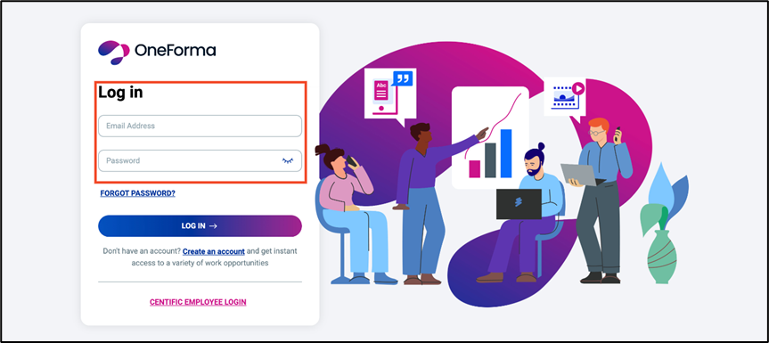 Log in to OneForma using your email and password, then navigate to Profile and click “View Profile”.
